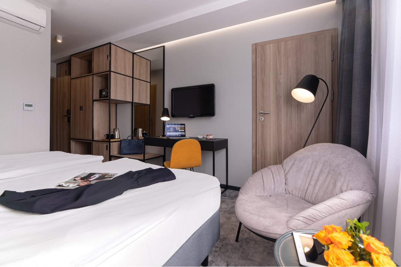 L'hotel offre 188 camere confortevoli, 4 suite, 155 camere doppie, 29 camere singole, di cui 2